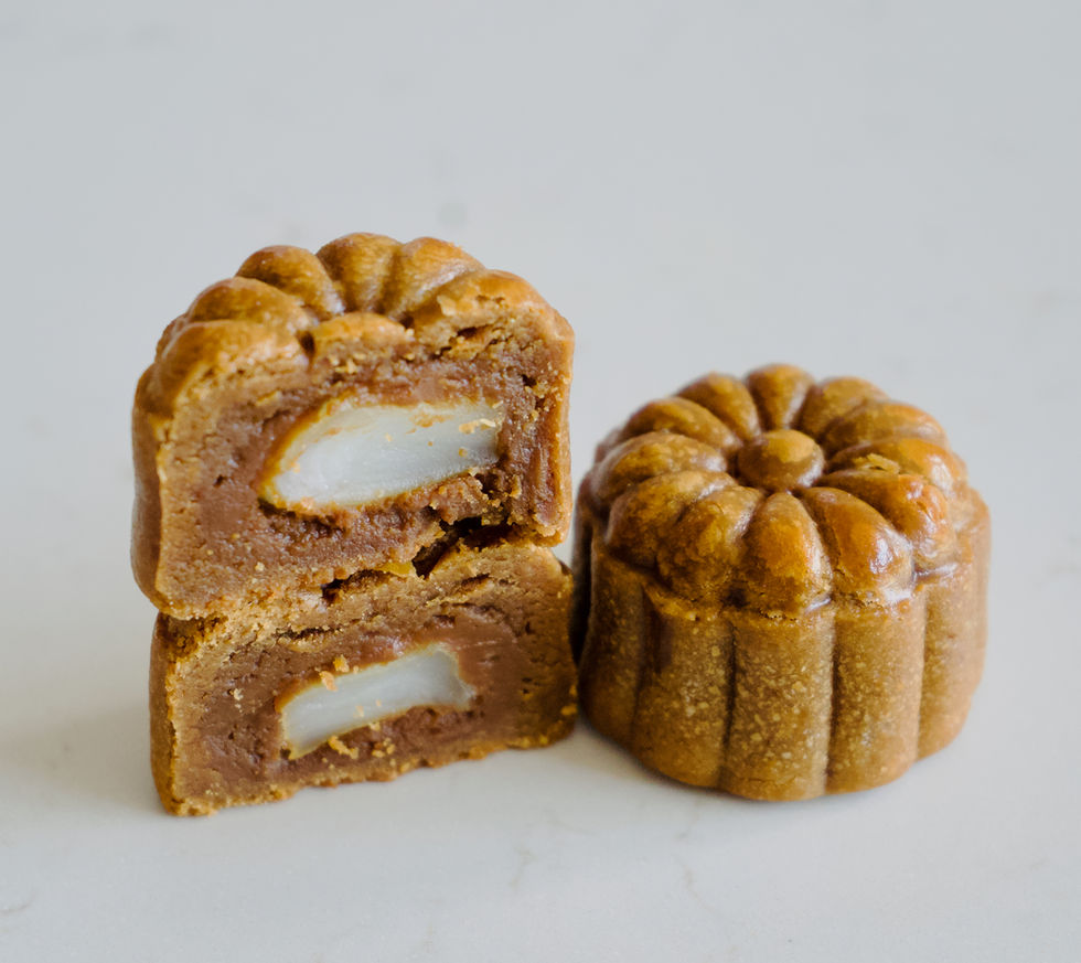 【原豆朱古力流心月餅】選用自家獲獎的 Bean-to-bar 原豆朱古力品牌 - Gamma Craft Chocolate - Togo Badou 黑朱古力製作,使得朱古力風味濃郁而獨特。當流心朱古力月餅翻熱後,流心效果更加明顯,帶來令人驚艷的視覺和味覺享受。
